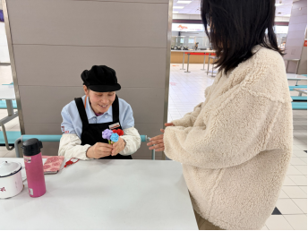 法学专业学生党支部开展了“巧手制花,致敬平凡”活动。成员们亲手制作皱纹纸手工花,并分组赠送给食堂阿姨、宿管老师和保安大叔。这一束束满载敬意的手工花,传递了对默默守护校园工作者的感谢。